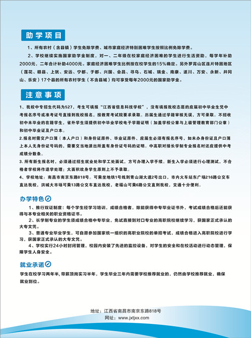 江西省信息科技學(xué)校(代碼527)。原名江西省統(tǒng)計(jì)學(xué)校,前身是創(chuàng)建于1954年的南昌統(tǒng)計(jì)學(xué)校,2007年經(jīng)省政府批準(zhǔn)更名為江西省信息科技學(xué)校,隸屬于江西省統(tǒng)計(jì)局,是經(jīng)省政府批準(zhǔn)、國(guó)家教育部備案的一所以培養(yǎng)信息技術(shù)人才為特色的公辦全日制國(guó)家級(jí)重點(diǎn)中專學(xué)校。學(xué)校位于南昌市南京東路818號(hào),交通便利,校園改造一新,環(huán)境優(yōu)雅,學(xué)習(xí)氛圍濃厚,具有良好的辦學(xué)條件。